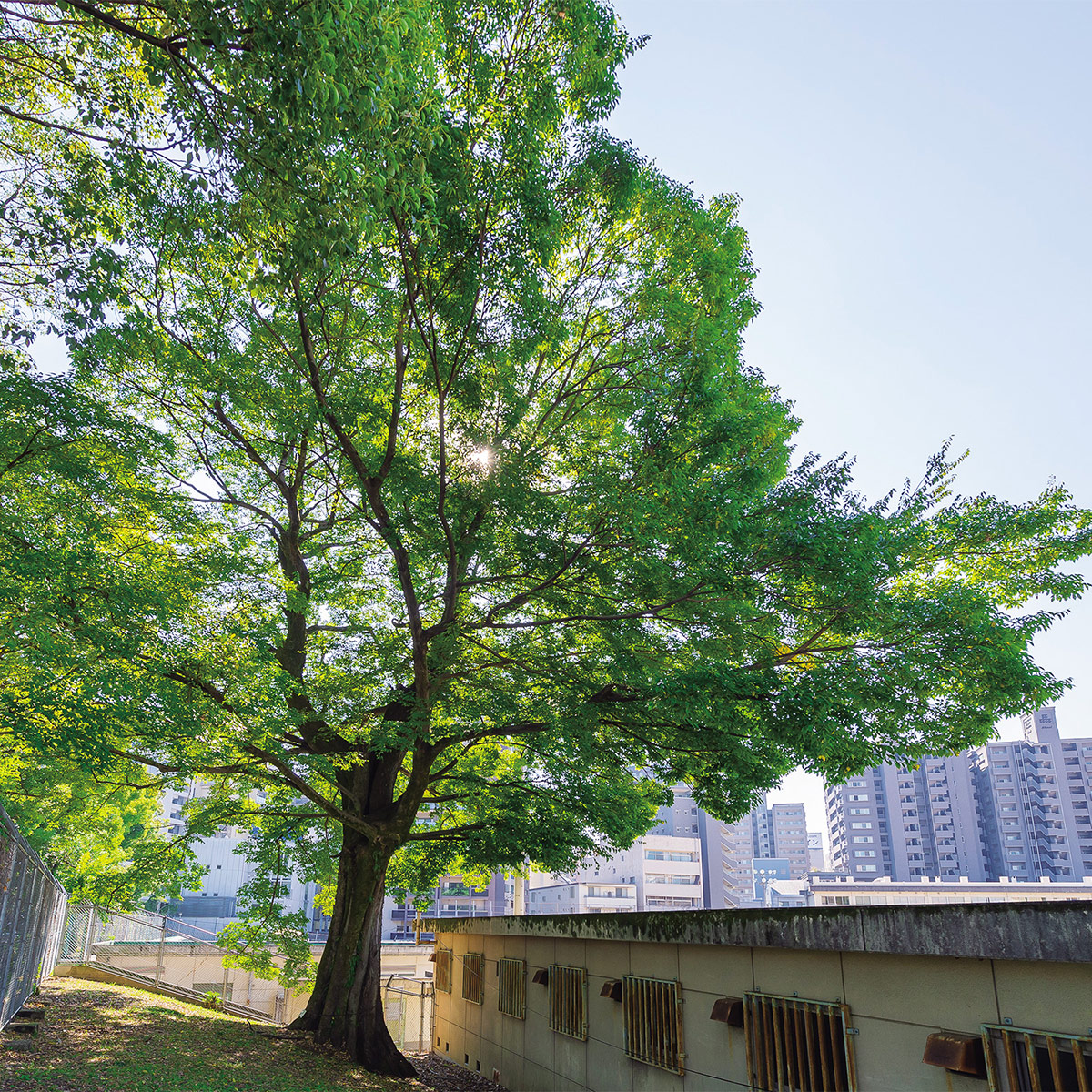 This is where Sadako Sasaki went to junior high school. You can find a large, deep scar from where the tree was burned in the intense heat on the side of the trunk facing the hypocenter. The tree itself also leans in that direction.